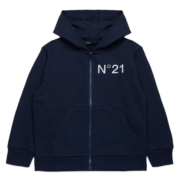Boys Blue Logo-Print Zip-up Hoodie by N21 featuring a soft cozy build with a standout front logo ideal for layering in style.