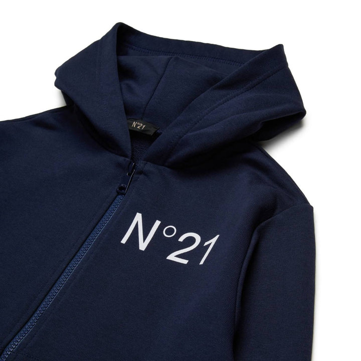 Boys Blue Logo-Print Zip-up Hoodie by N21 featuring a soft cozy build with a standout front logo ideal for layering in style.