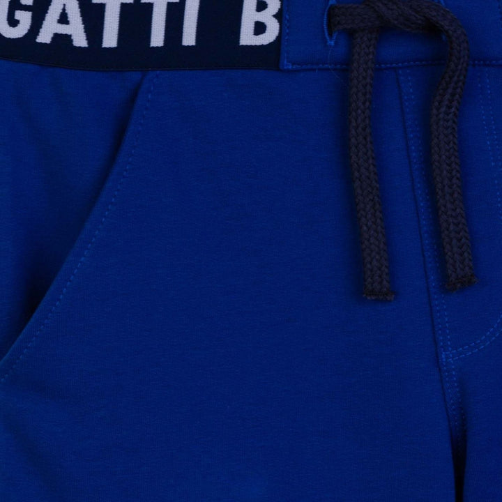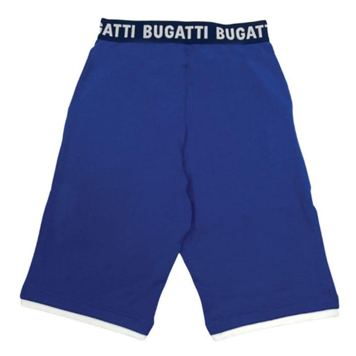 Navy logo shorts for boys by Bugatti Junior. Made from soft cotton, it features the brands logo rubber badge on one leg and it has dual side pocket. An logo elasticated waistband and drawstring for comfortable fit.