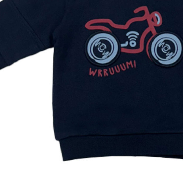 Sarabanda Boys Blue Motorbike-Patch Tracksuit made from 100% cotton, comfortable and stylish for casual wear.