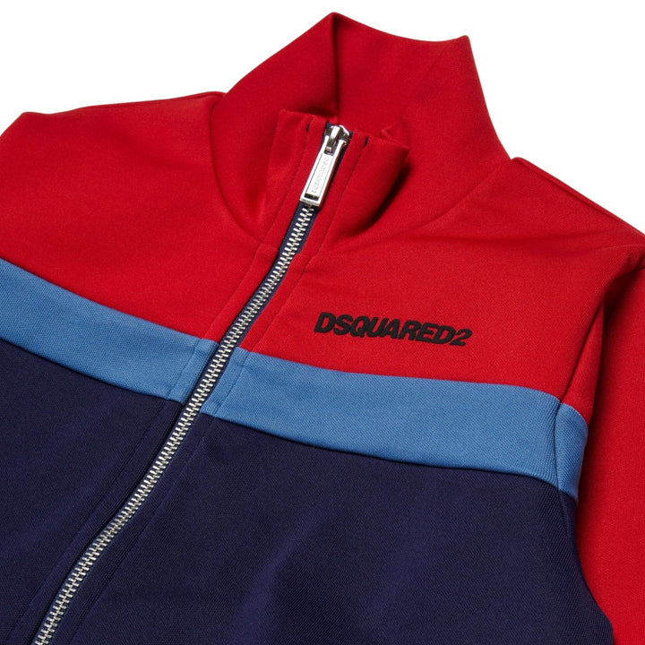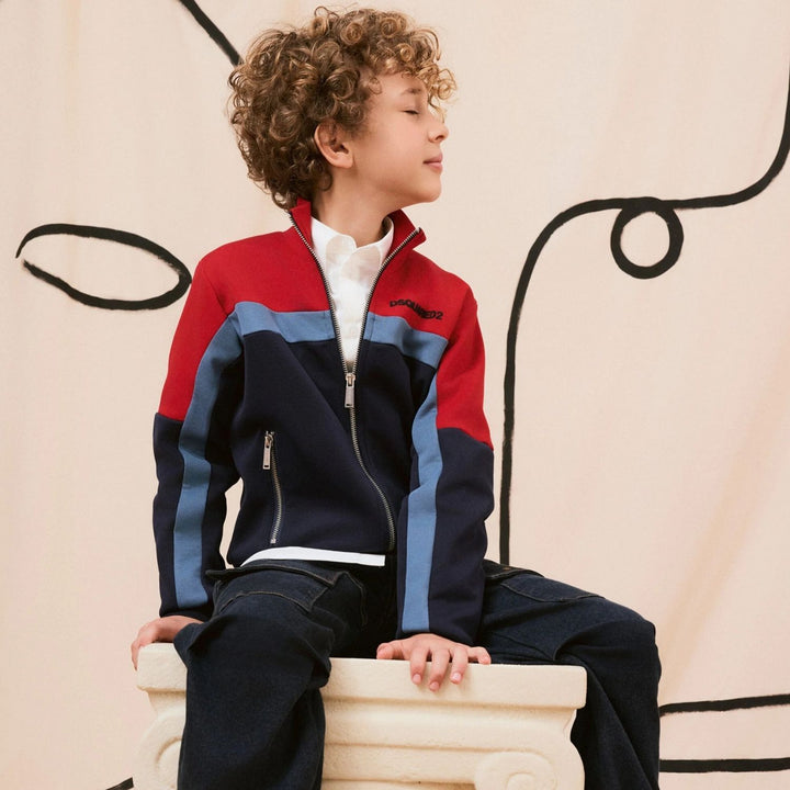 Boys Blue & Red Zip-Up Logo-Print Sweatshirt