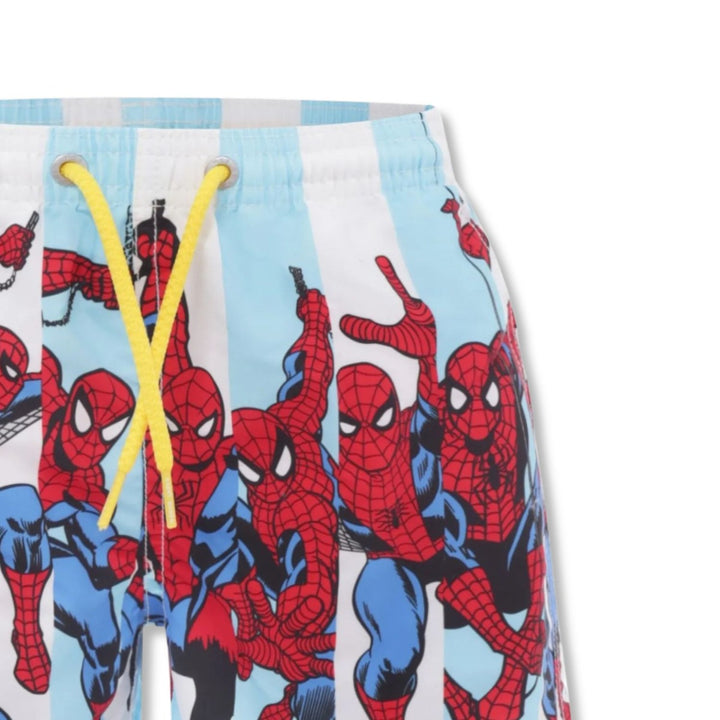 The Boy Spider-Man Logo Print Swim Shorts from MC2 Saint Barth feature a bold Spider-Man logo design and are made from quick-drying fabric for ultimate comfort. With an elastic waistband for a secure fit, these swim shorts are perfect for any young superhero to enjoy the pool or beach in style.