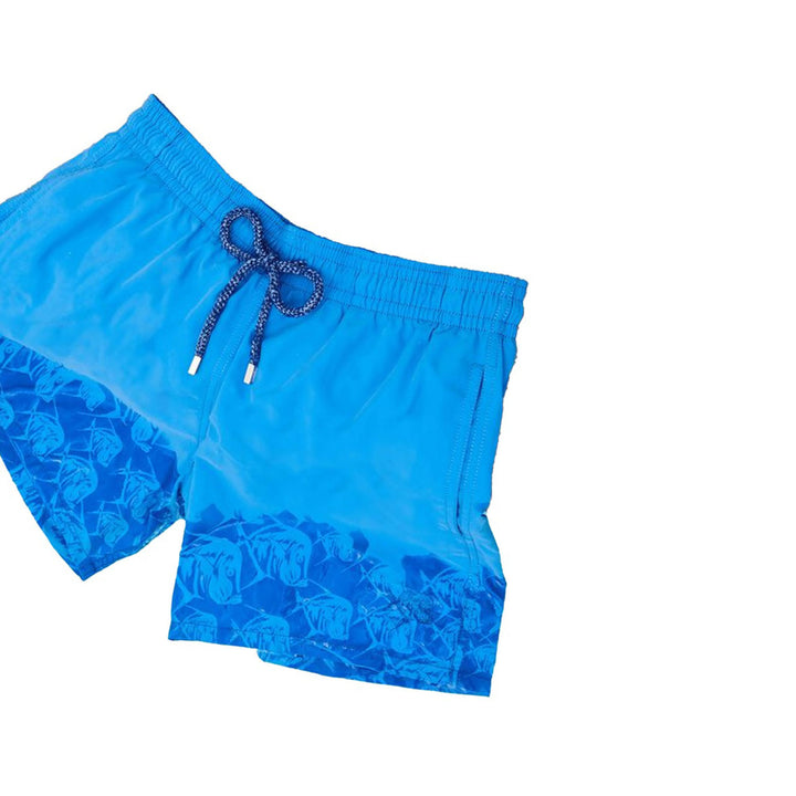 Kids will feel like theyre growing fins on their first dive with the Jim Water-reactive Piranhas boys swimming trunks. Invisible when the fabrics dry, the tone-on-tone piranhas only appear when these three-pocket shorts are wet.