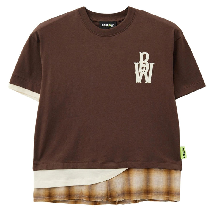Boys brown logo-print T-shirt designed with a comfortable fit, soft fabric, and a stylish front logo that adds a modern touch. Perfect for everyday wear, offering both durability and a trendy casual look.