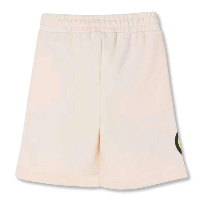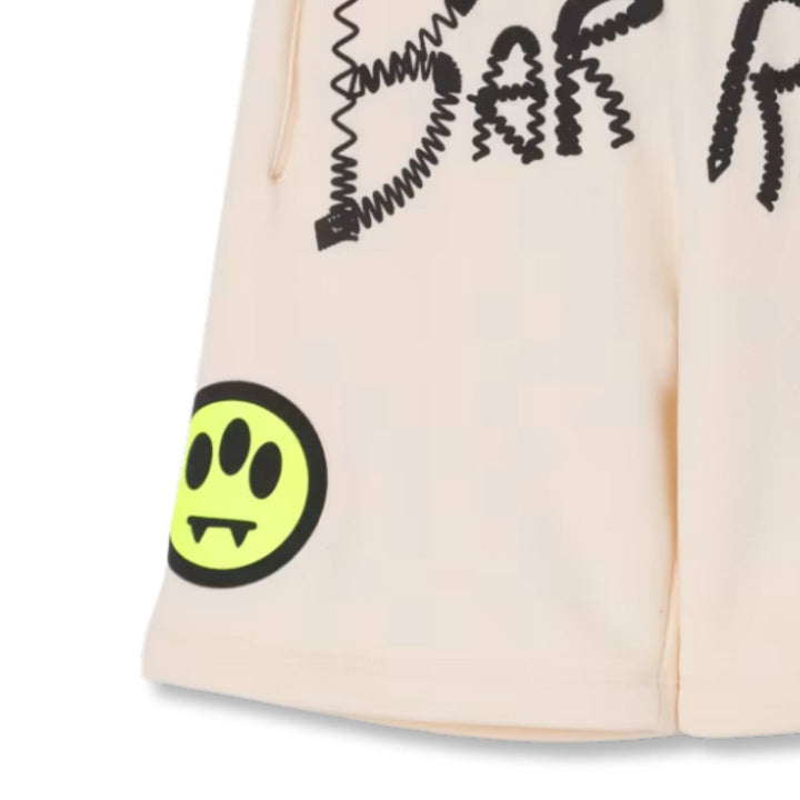 Cream Barrow Kids shorts with a logo stamp, elastic waistband, drawstring, and side pockets. Made from 1% cotton for all-day comfort.