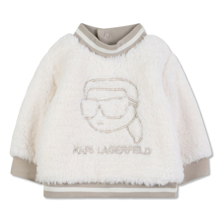 Boys cream sweatshirt featuring a bold Karl logo print, made from soft cotton for a cozy and stylish everyday look.