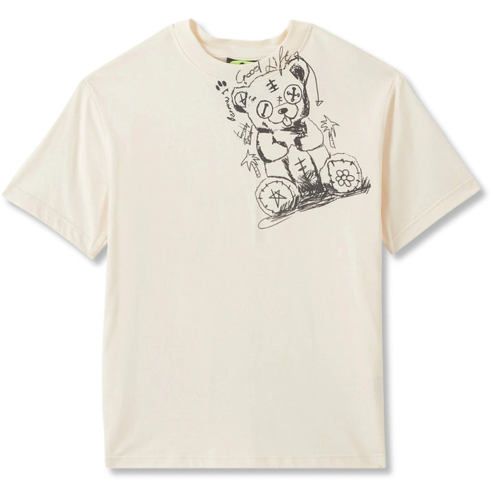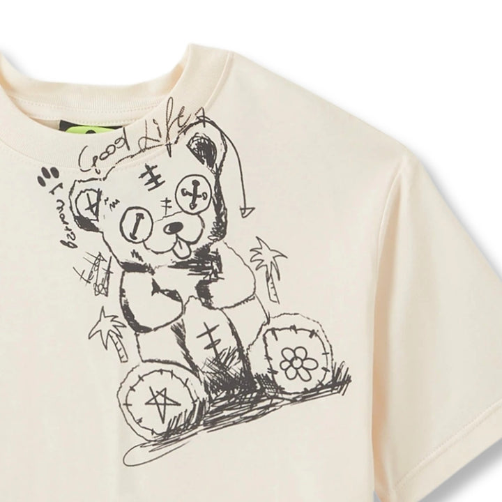 A fun white t-shirt with a smiley face motif, made in Italy. Features a crew neck and short sleeves for a comfy, playful style.