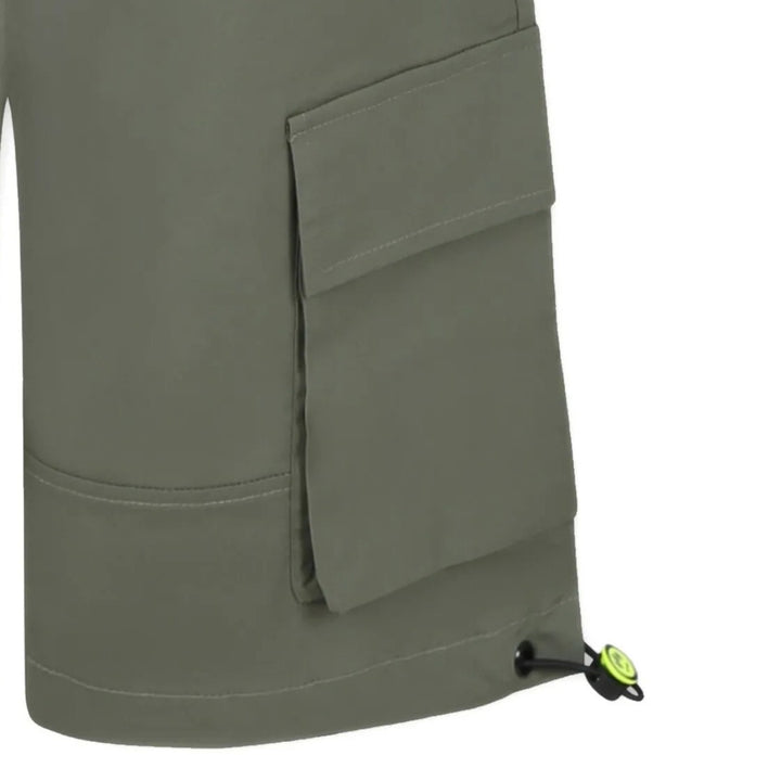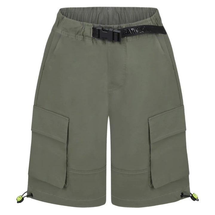 Barrow Kids Poplin Cargo Shorts in dark green with buckle fastening, elastic waistband, and multiple pockets.