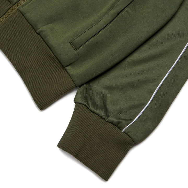 Diesel boys dark green zip-up jacket with a signature logo patch. Made from a comfy blend of polyester, cotton, and elastane, with ribbed trims for added stretch. A versatile outer layer perfect for cool-weather style.