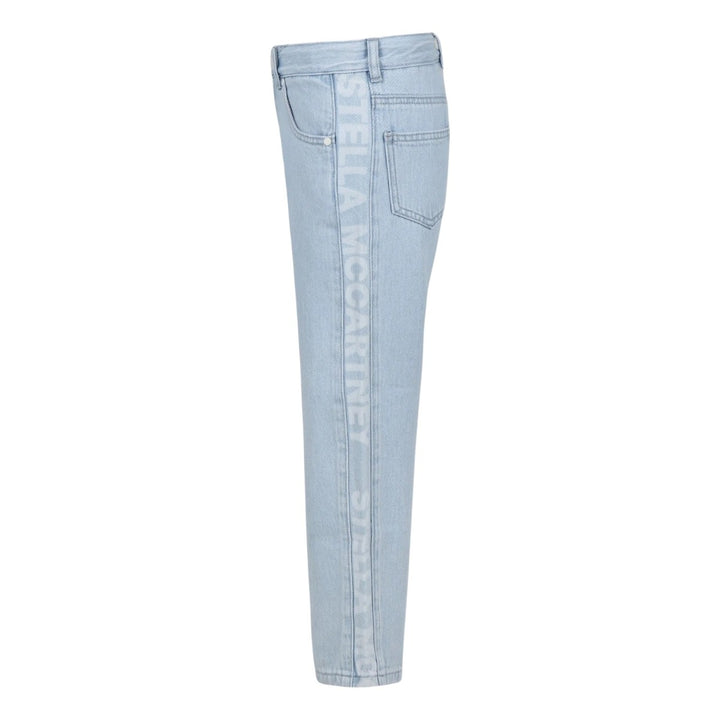 These stylish Stella McCartney Kids jeans feature a classic light blue wash with a trendy wide-leg silhouette. Crafted from soft and durable denim, they offer both comfort and a relaxed fit, perfect for everyday wear. The jeans have a button and zip closure, belt loops, and a classic five-pocket design.