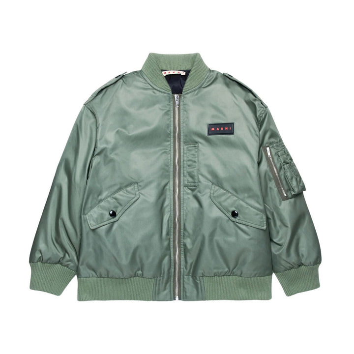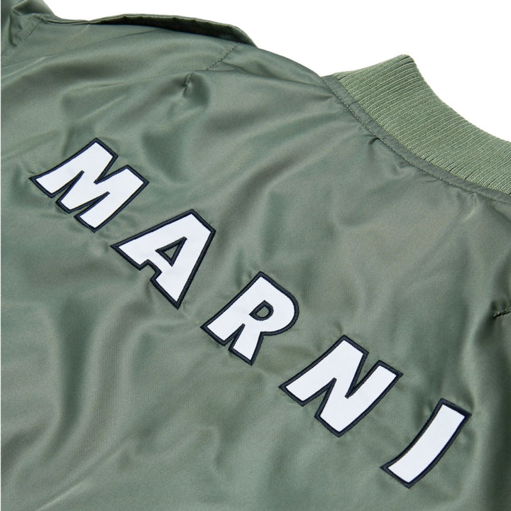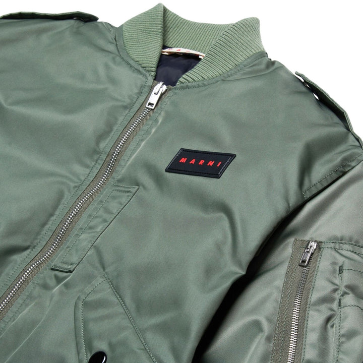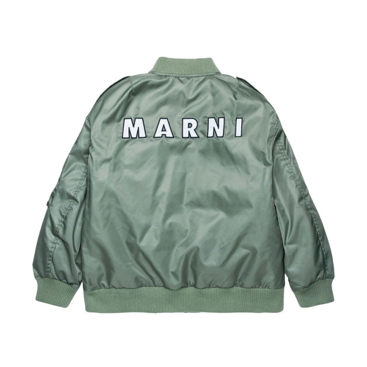 Long-sleeved nylon lightly-padded bomber jacket. Features an imitation leather Marni patch on the front left side. Zip closure with logoed puller. Front flap pockets with buttons. Sleeve pocket. Institutional logo on the back in contrasting colour. S