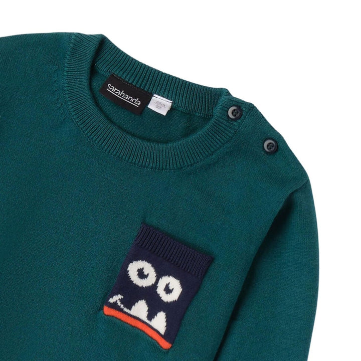 Sarabanda Boys Green Graphic-Print Pocket Sweatshirt made from 7% cotton and 3% polyamide, warm, soft, and comfortable for casual wear.