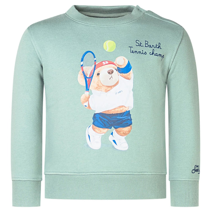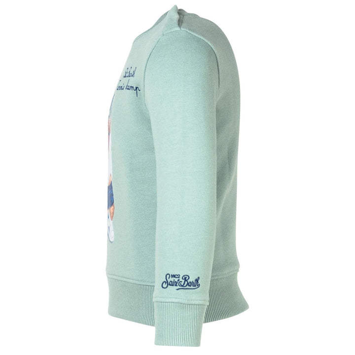 A cool green sweatshirt for boys featuring a bold graphic print on the front. Made from soft, comfortable fabric perfect for everyday wear with a fun, stylish look.