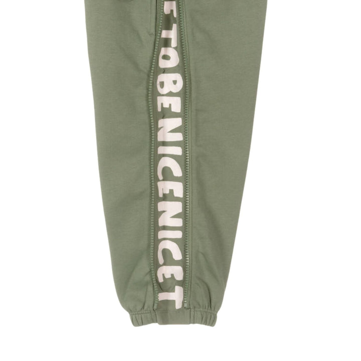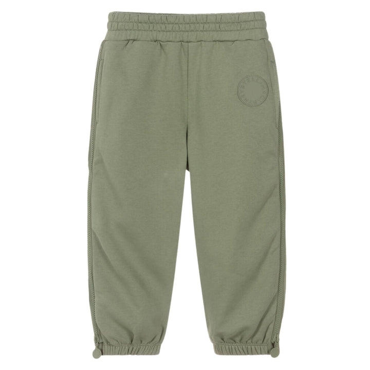 Casual and comfortable for boys, these khaki green joggers are by Stella McCartney Kids. They have three pocket styling and feature playful zipped sides which reveal a positive slogan print when unzipped. Made in a soft cotton blend jersey, they have