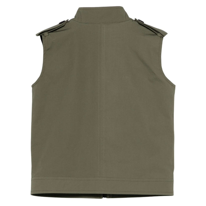 This olive green vest from MSGM Kids features a practical front zip fastening, multiple flap pockets, and classic epaulettes. Finished with a signature logo patch, it's crafted from a stretch-cotton blend with a soft cotton lining for comfort and utility combined.