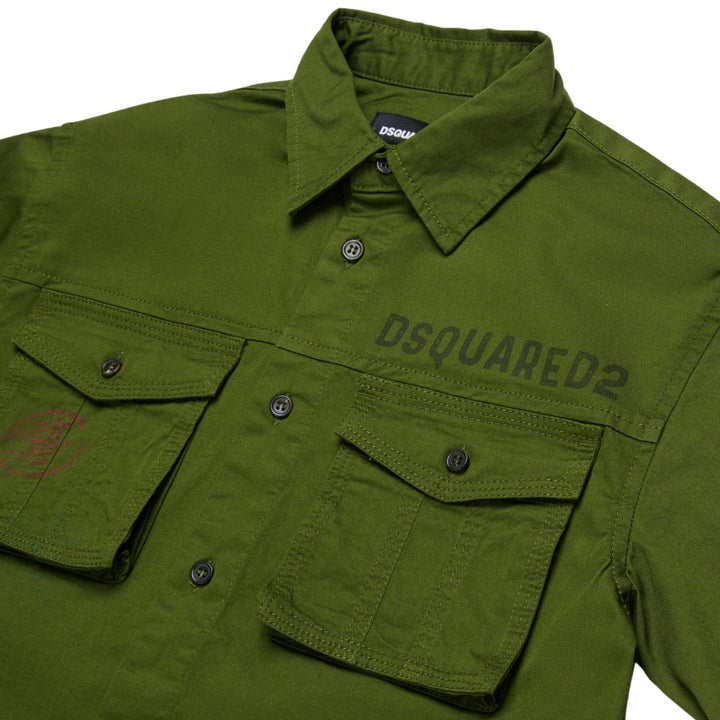 Stretch cotton gabardine short-sleeved shirt. Dsquared2 logo with Passport graphic on the front. Breast pockets. Front closure.