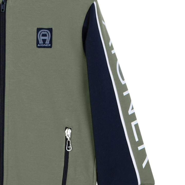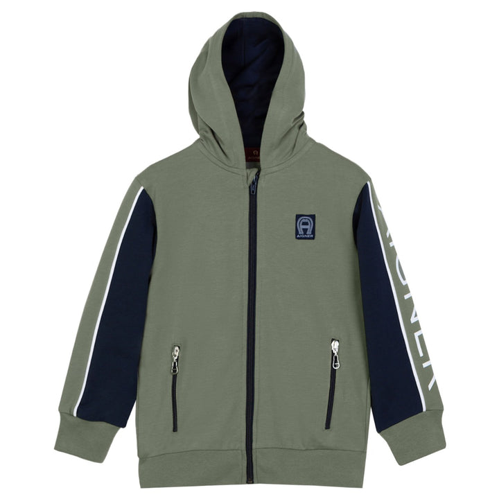 Boys Green Logo Zip-Up Hoodies