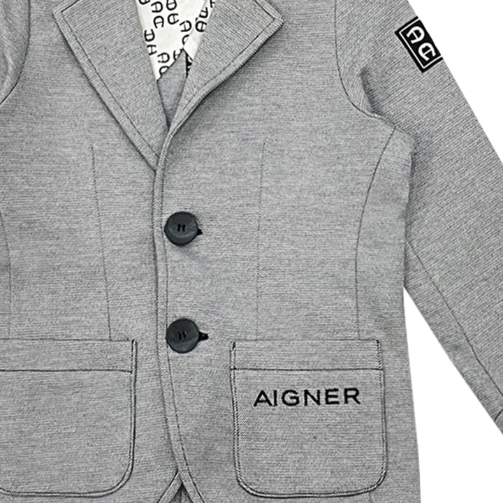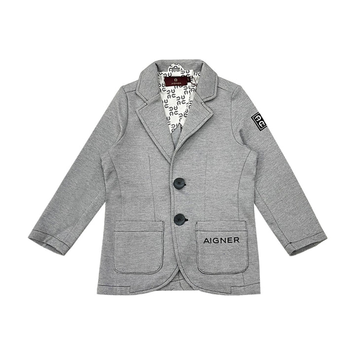 Boys Grey Embroidery-Logo Blazer