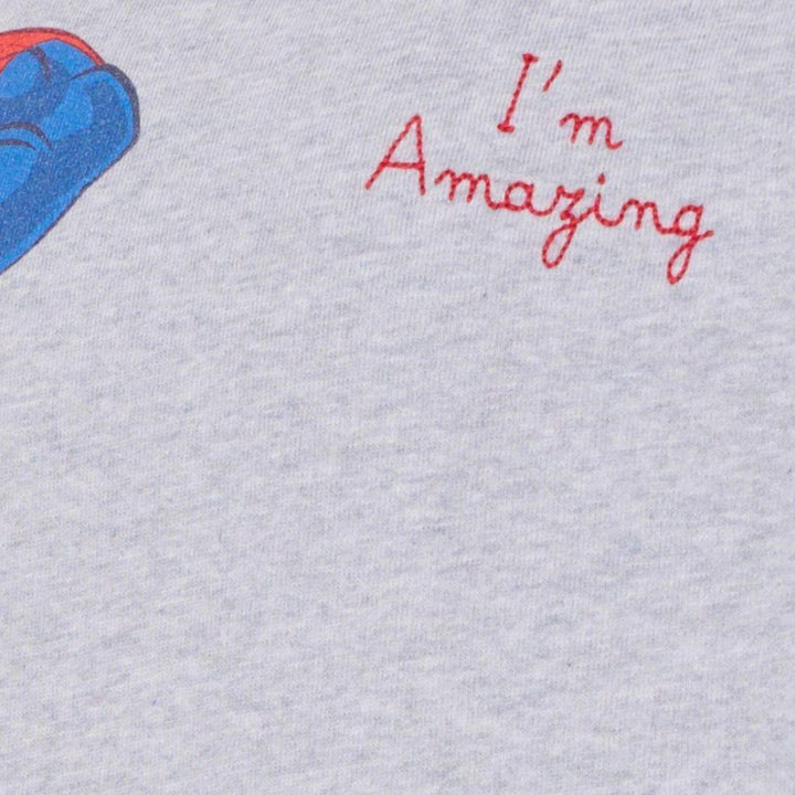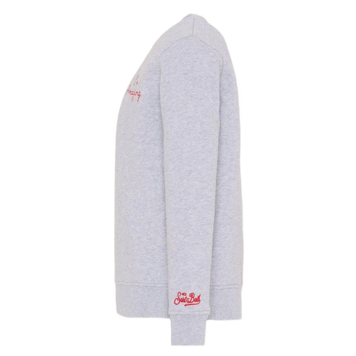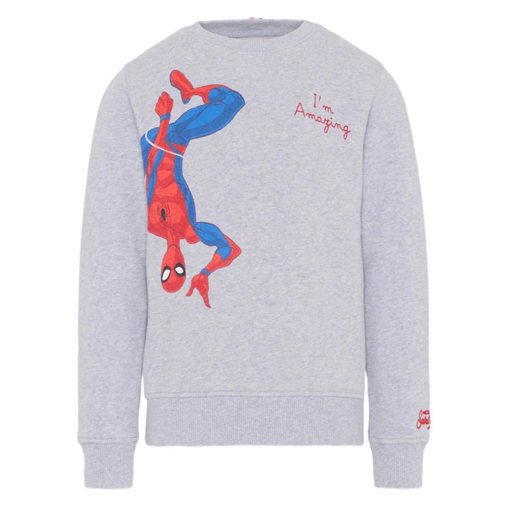 A soft grey sweatshirt for boys featuring a fun graphic print on the front. Made from comfortable, cozy fabric perfect for everyday wear with a playful, stylish look.