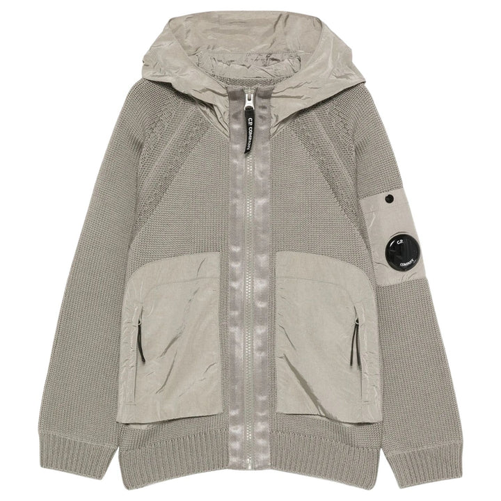 Boys Grey Logo-Patch Knitted Zip-Up Jackets