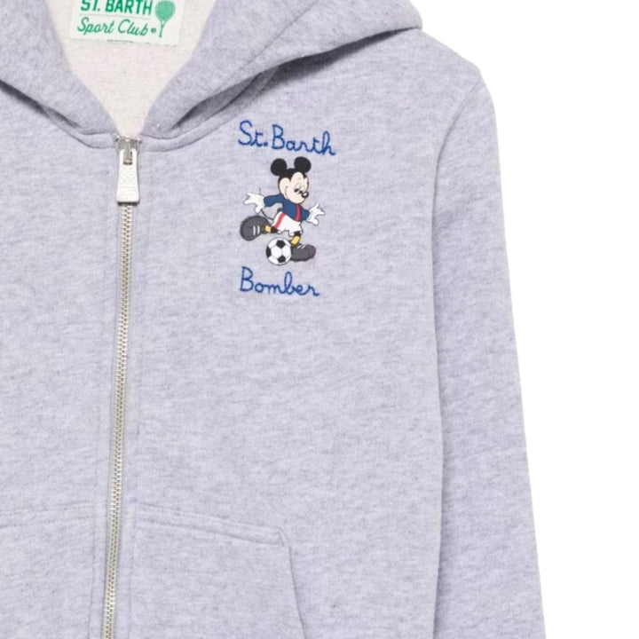 Boys Grey Zip-Up Mickey-Print Hoodie