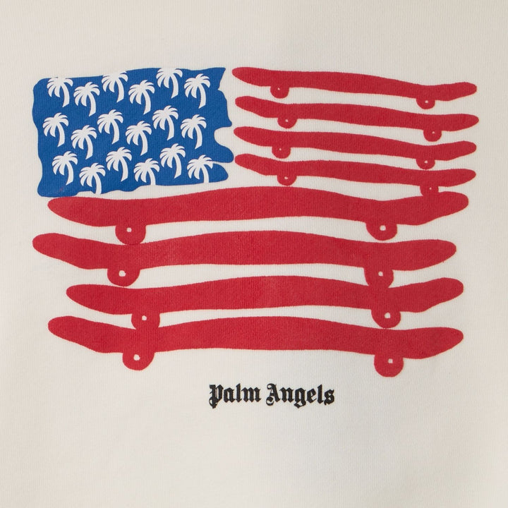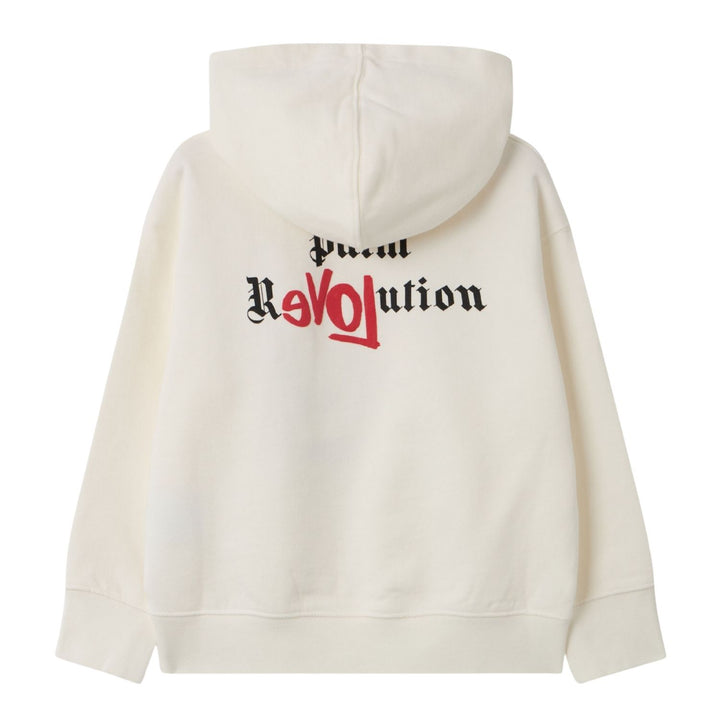 This boys ivory hoodie from Palm Angels combines minimalist luxury with casual comfort. Crafted from soft cotton fleece, it features the signature logo patch on the chest, a relaxed fit, ribbed trims, and a drawstring hood making it a versatile and s