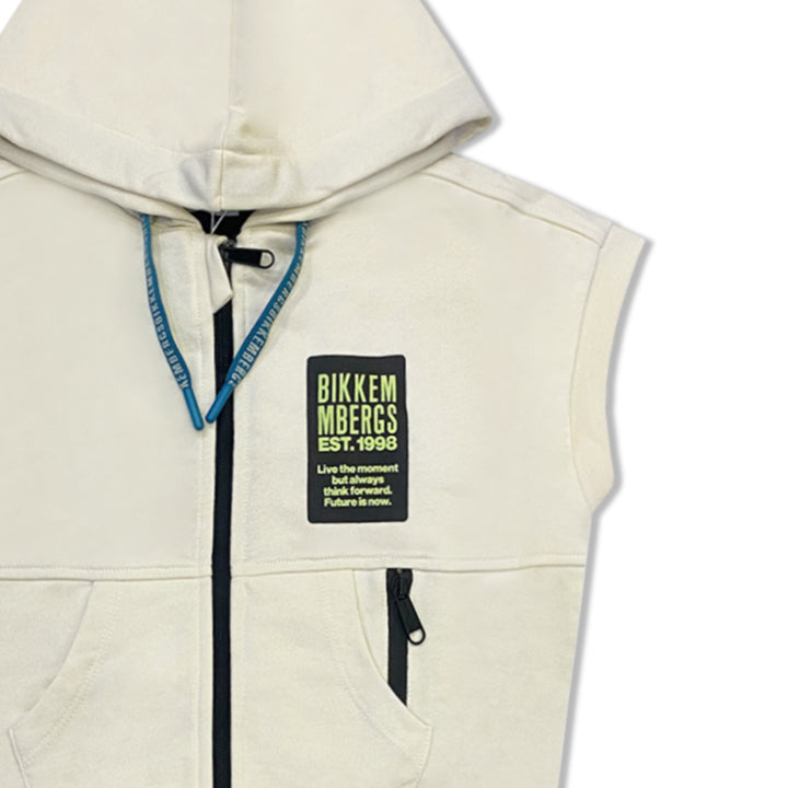 Boys Ivory Sleeveless Zip-Up Hoodies