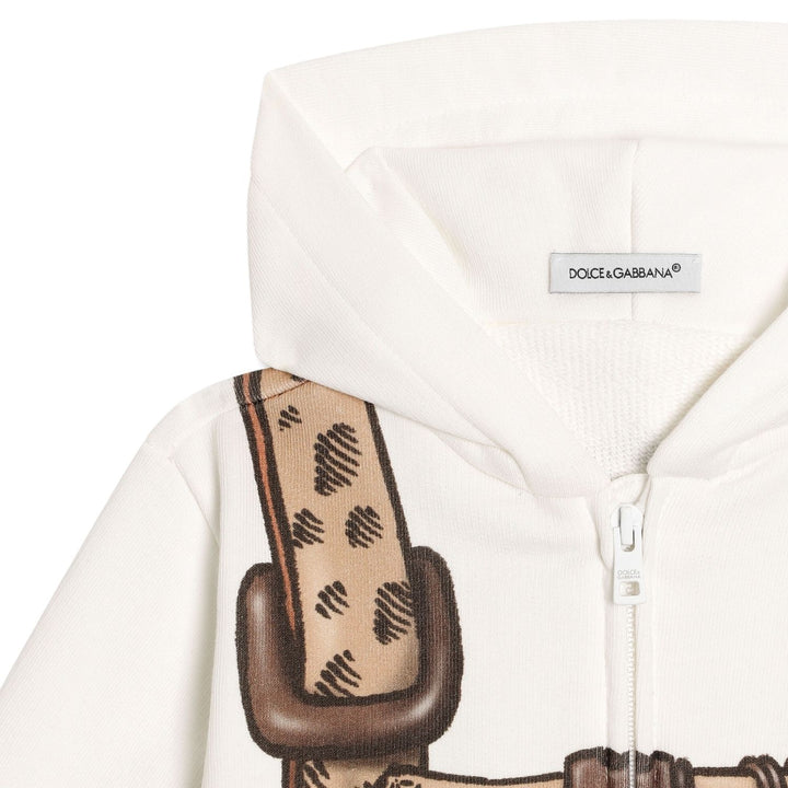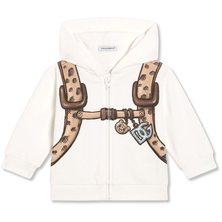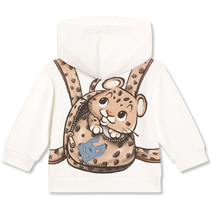Boys Ivory Zip-Up with Leopard Backpack Print Hoodies