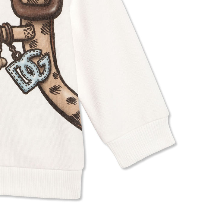 Comfy ivory cotton hoodie with a unique leopard backpack print. A playful yet trendy addition to everyday wear.