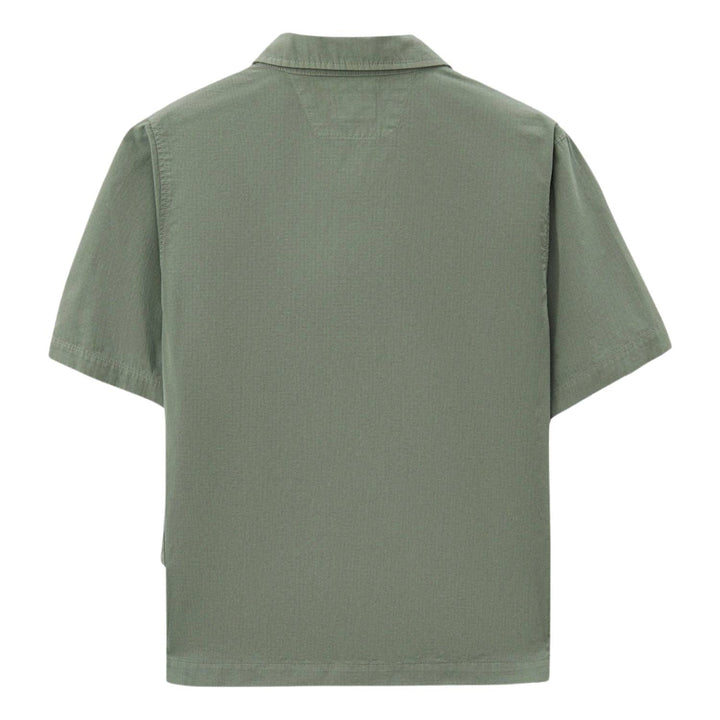 Elevate your childs smart-casual wardrobe with this stylish khaki green shirt. Made from soft, breathable cotton, it features a sharp collar, button-down front, and a comfortable regular fit. A bold logo print adds a modern, branded touch, making it