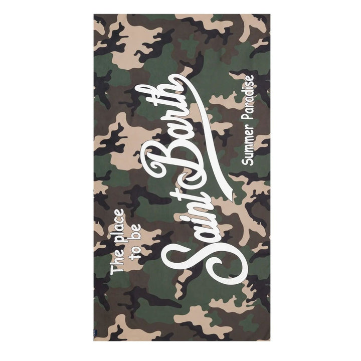 The Boy Khaki Green Logo Print Towel from MC2 Saint Barth is a stylish and practical addition to his summer gear. Featuring a subtle yet bold logo print in a khaki green hue, this soft, absorbent towel is perfect for the beach, pool, or after a fun day outdoors. Made from high-quality cotton, it provides both comfort and durability, while the sleek design adds a cool, understated touch to his essentials. Whether drying off or lounging in the sun, this towel combines functionality with style.