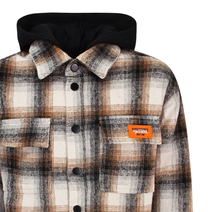 Trendy multicolor hooded shirt for boys by Bikkembergs, showcasing bold logo prints and a casual streetwear-inspired look.