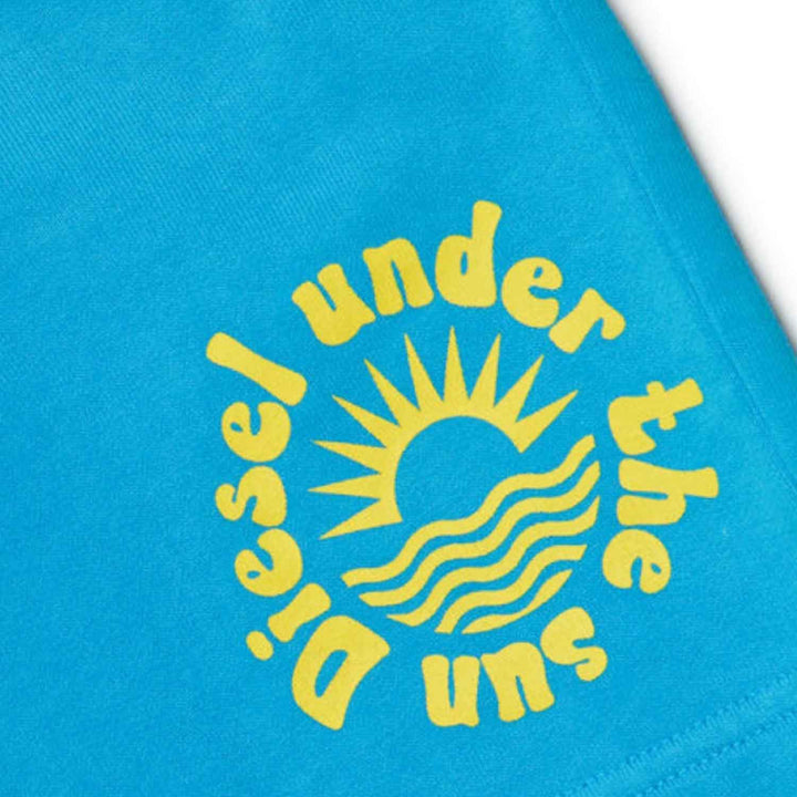 Short sweatshirt pants. Drawstring waist. Personalized using dip dye technique with multicolor gradients. They feature the DIESEL Under the Sun logo on the front. American-style front pockets and back breast pocket. Made of 1% cotton. This garment is