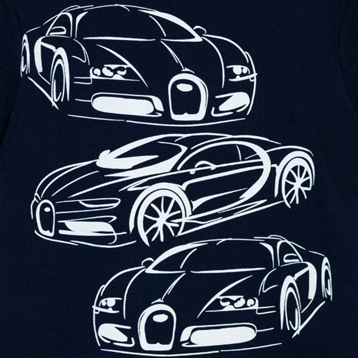 Boys Navy Blue Bugatti Car-Print T-Shirt