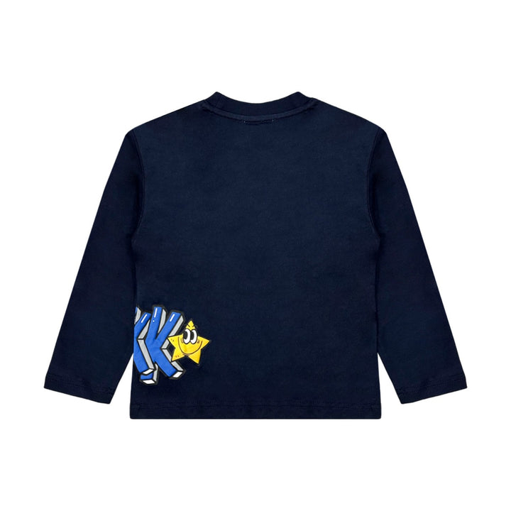 Boys Navy Blue Graphic-Print Cotton T-Shirt