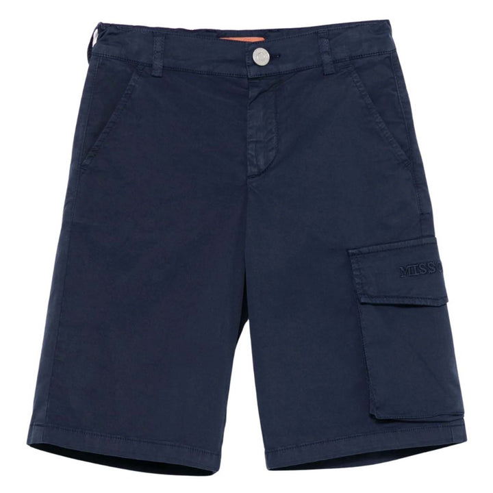 These Missoni cargo shorts offer a classic and stylish look with a deep navy blue color and a practical design. They feature a regular fit with a structured waistband, belt loops, and a front button closure.