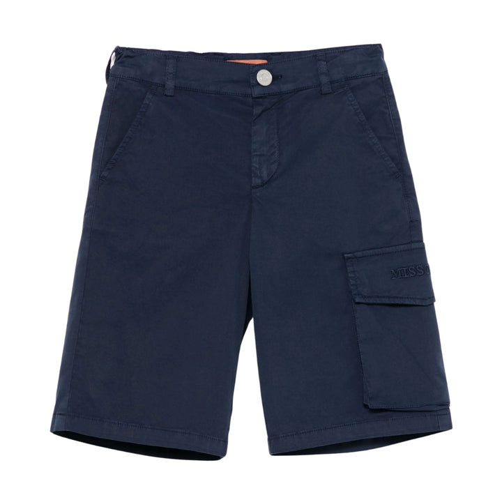 These Missoni cargo shorts offer a classic and stylish look with a deep navy blue color and a practical design. They feature a regular fit with a structured waistband, belt loops, and a front button closure.