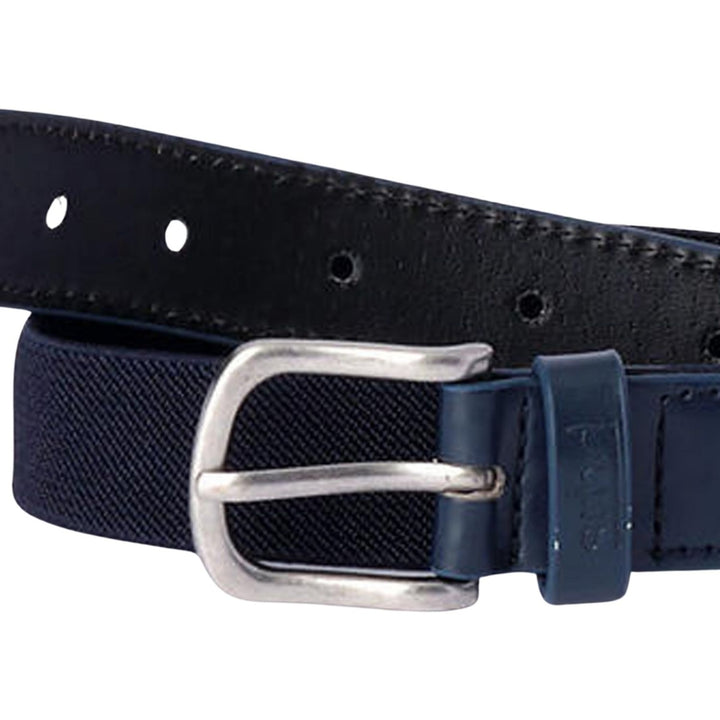 Sarabanda Boys Navy Blue Logo-Print Belt made from 60% polyester and 40% elastane, durable with a comfortable stretch fit.