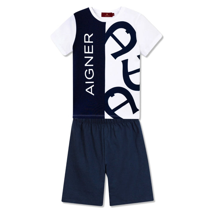 Boys Navy Blue Logo-Print Shorts Set