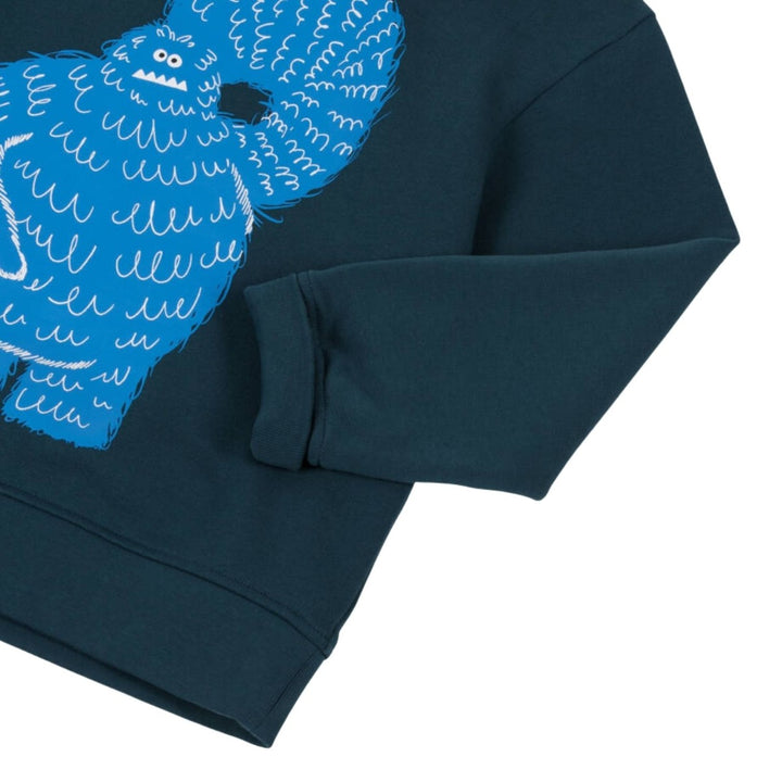 Relaxed and comfortable dark blue sweatshirt for boys by Stella McCartney Kids, made in mid-weight cotton with a fleecy feel inside. A versatile casual top, it has a giant yeti printed on the front.