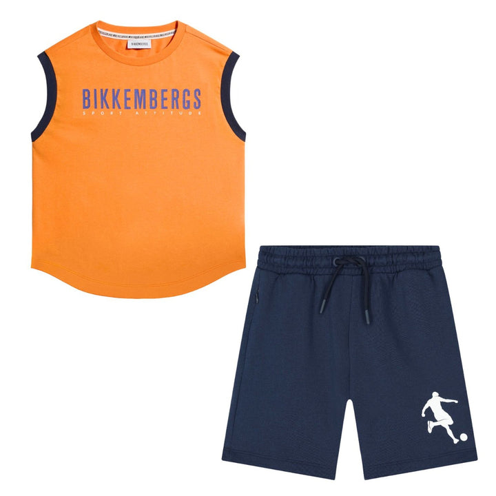 Keep it cool and sporty with this sleeveless Orange and blue short set featuring bold BK logo Print. Perfect for summer play and casual outings.