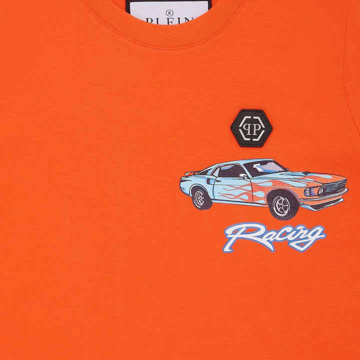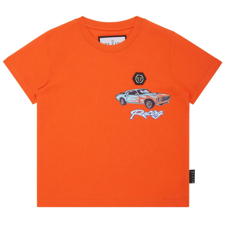 Boys Orange Car Logo-Patch Cotton T-Shirt