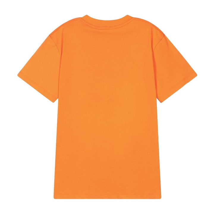 Orange graphic T-shirt for teen boys by Molo, made in soft organic cotton jersey. Printed on the front is a black, grey and orange futuristic sports car flying above the mountains, it also has a logo tab on the side seam.