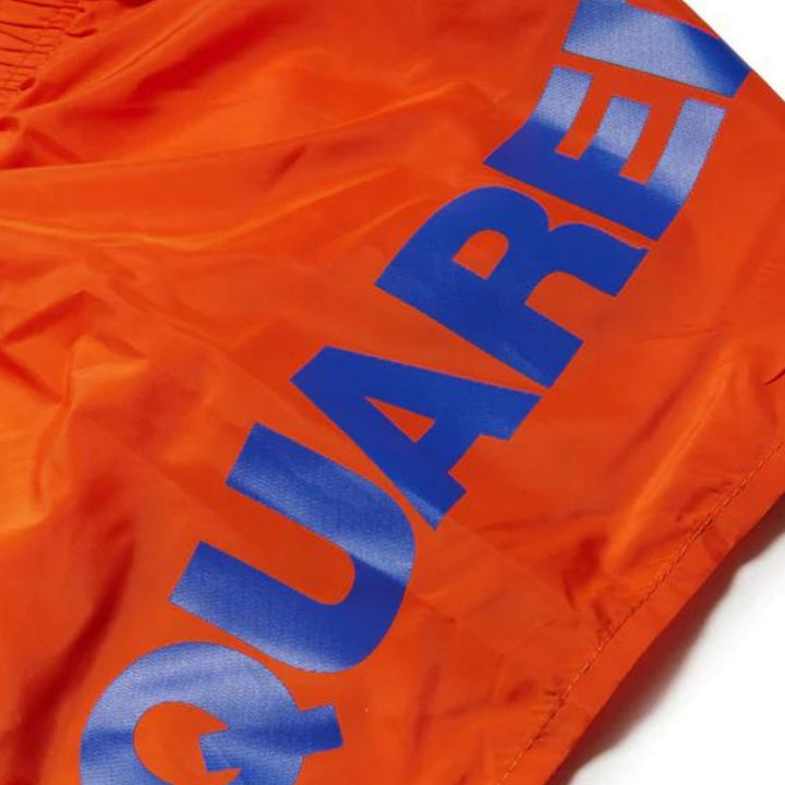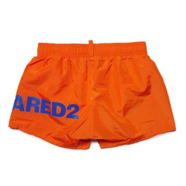 Polyester boxer swim shorts. Mid-length. Drawstring waist. Features a contrasting color Dsquared2 logo that hugs the garment starting at the front and ending at the back. A cool option for summer occasions.