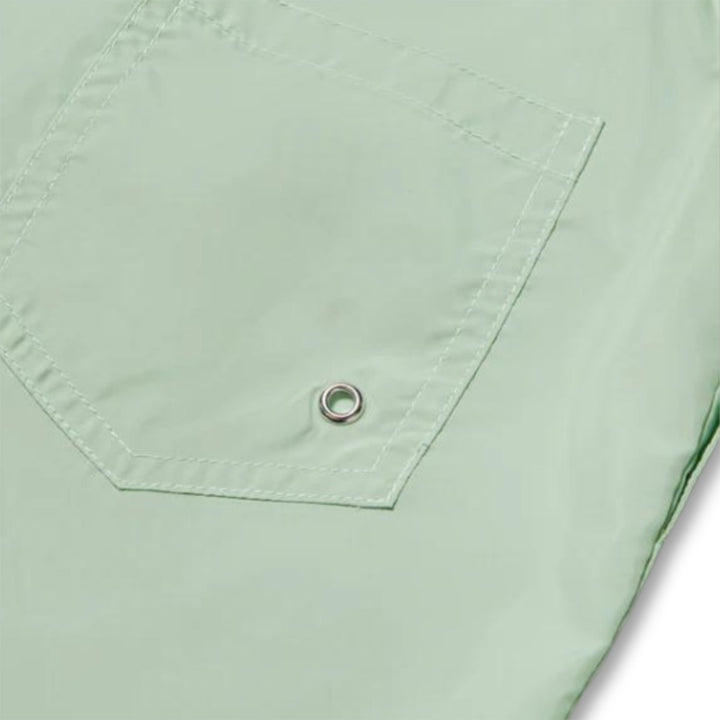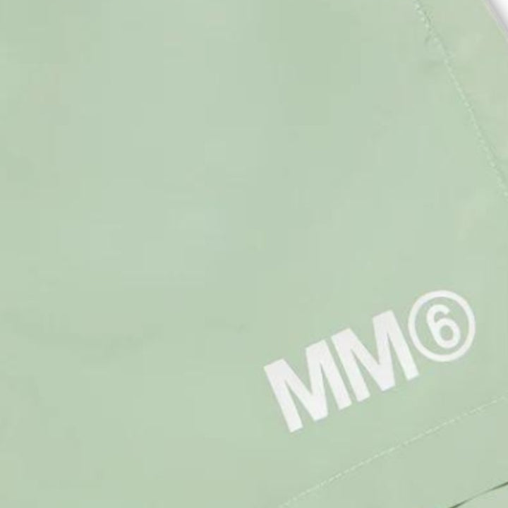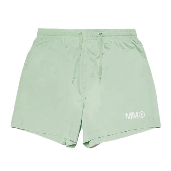 Nylon short boxer swimsuit with drawstring waist. Medium length. Featuring a contrasting color MM6 institutional logo on the front. Side pockets. Pocket and iconic stitching on the back. A garment designed to welcome summer in style.