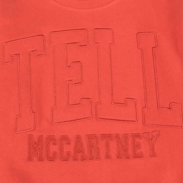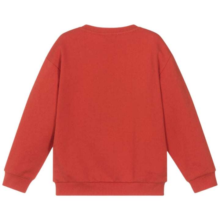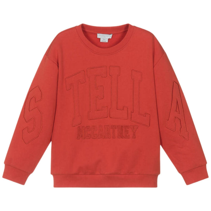 Boys red sweatshirt by Stella McCartney Kids showcases a bold tonal embroidered logo design across the chest. Made from soft cotton jersey, with a warm , fleecy inside, the sweatshirt offers superior comfort and warmth for the cooler months. With a c