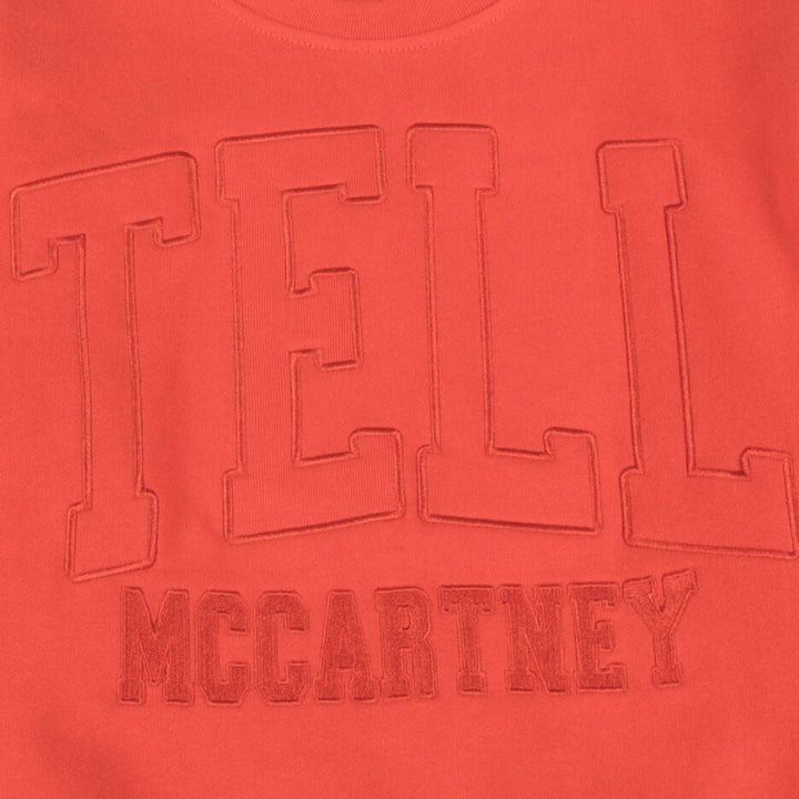 Boys red sweatshirt by Stella McCartney Kids showcases a bold tonal embroidered logo design across the chest. Made from soft cotton jersey, with a warm , fleecy inside, the sweatshirt offers superior comfort and warmth for the cooler months. With a classic crew neckline and ribbed trims, it provides a relaxed yet stylish fit, ideal for layering.