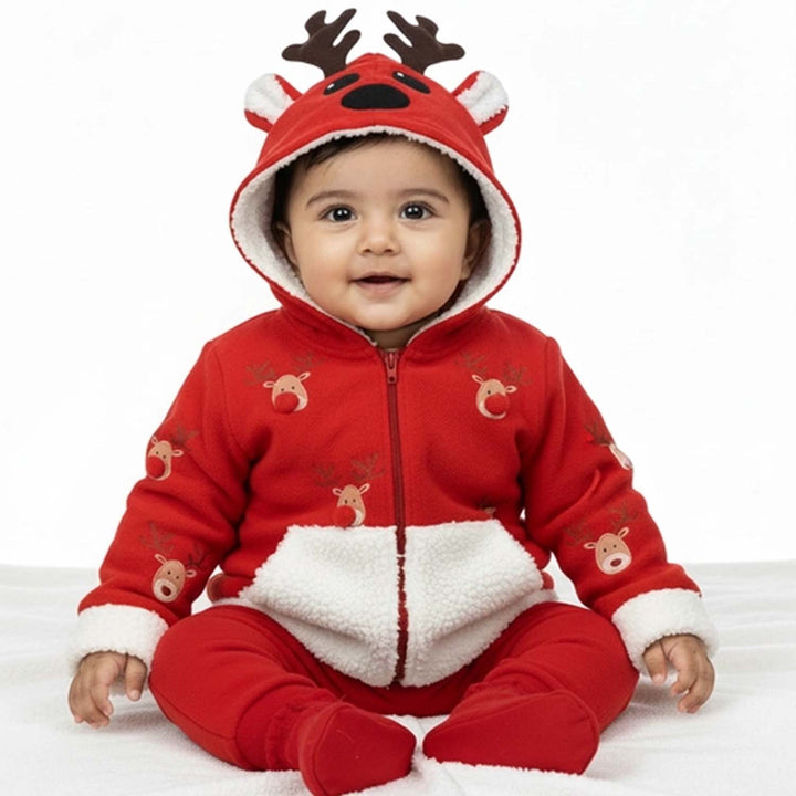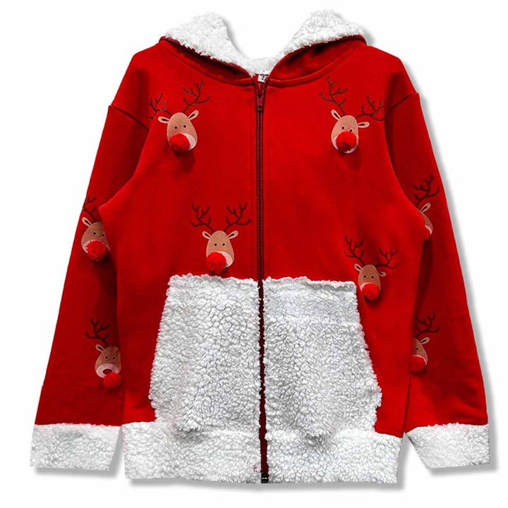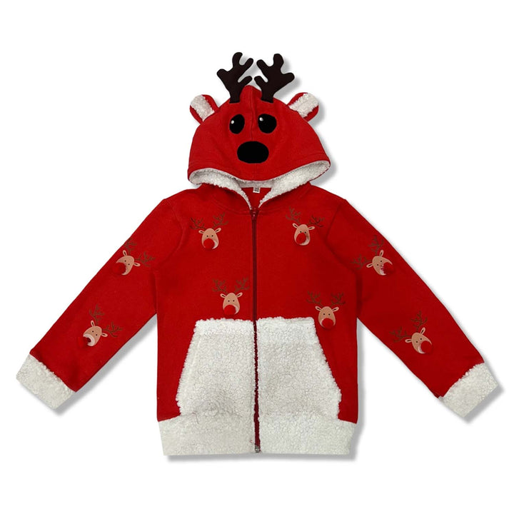 Boys Red Reindeer-Print Hoodie adds a playful festive touch with its bright red color and cheerful reindeer design. Made from soft, warm fabric, it keeps him cozy and comfortable during the winter season, perfect for casual outings and Christmas celebrations.