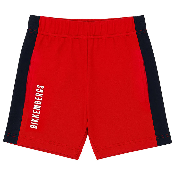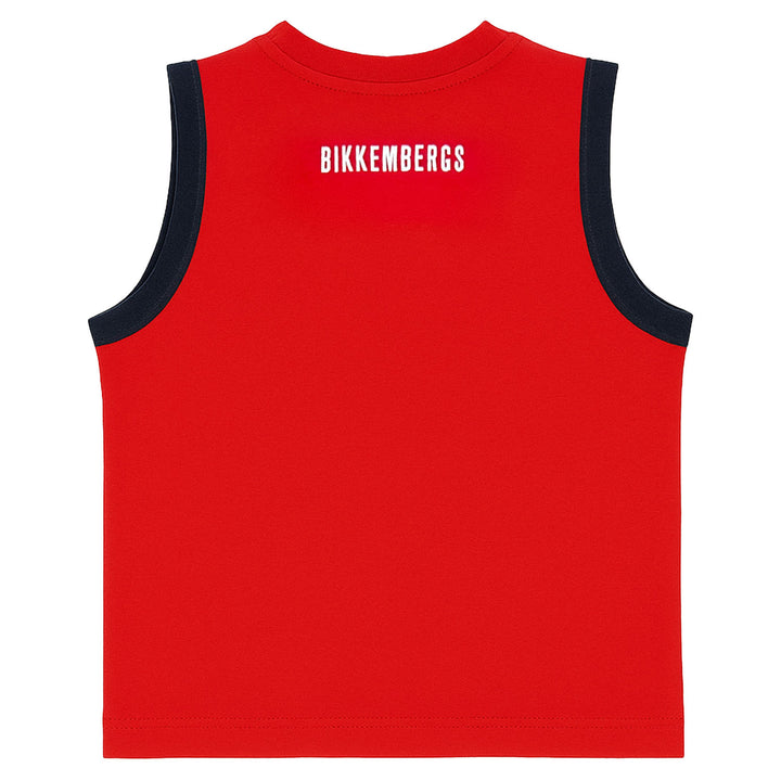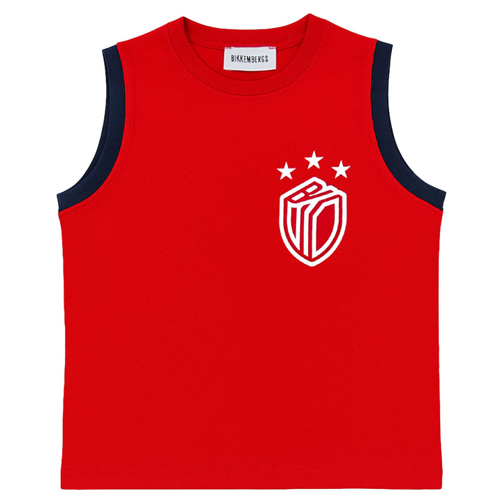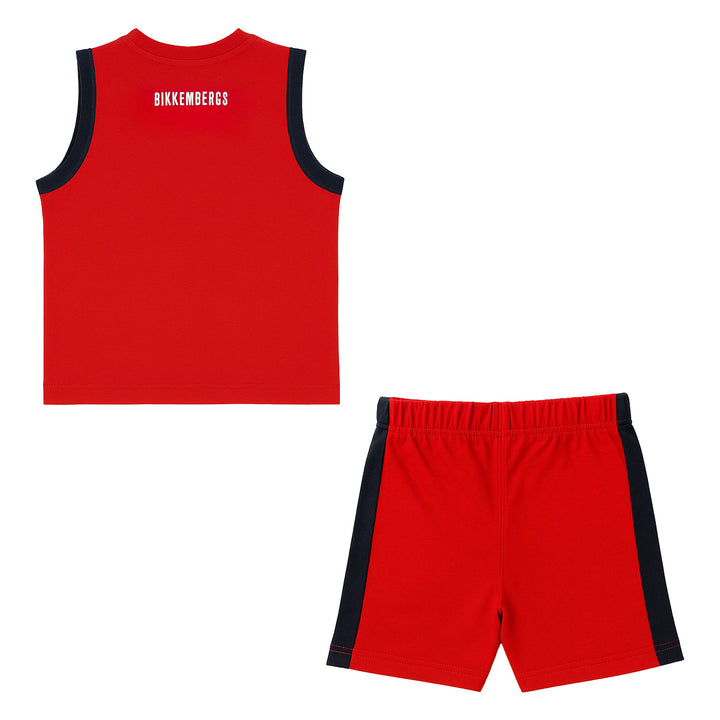 Keep it cool and sporty with this sleeveless red short set featuring bold blue side panels and a striking BK logo. Perfect for summer play and casual outings.