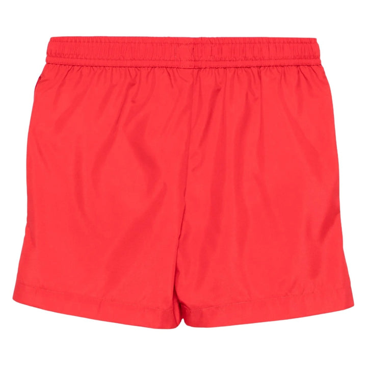 Bright Red Teddy Bear swim shorts with an elasticated drawstring waistband, two side inset pockets, and a front logo print. Fun and comfortable for beach days.